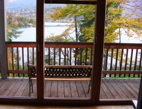 Essbereich mit Blick auf den frühsommerlichen See