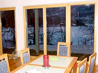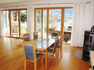 Essbereich mit Blick auf den winterlichen See