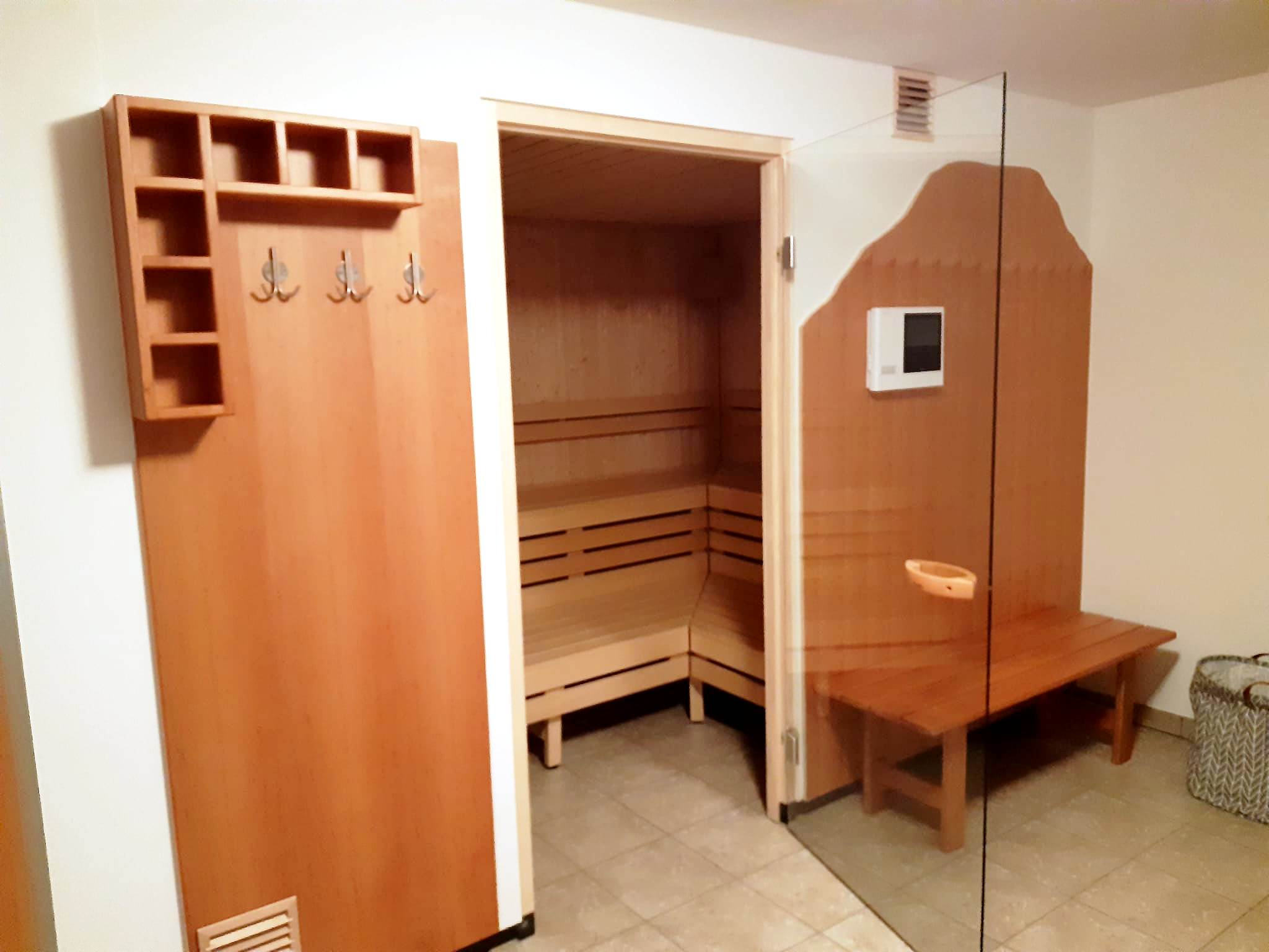 Neue, großzügige Saunalandschaft im Untergeschoss. Entspanntes Liegen für vier Personen.